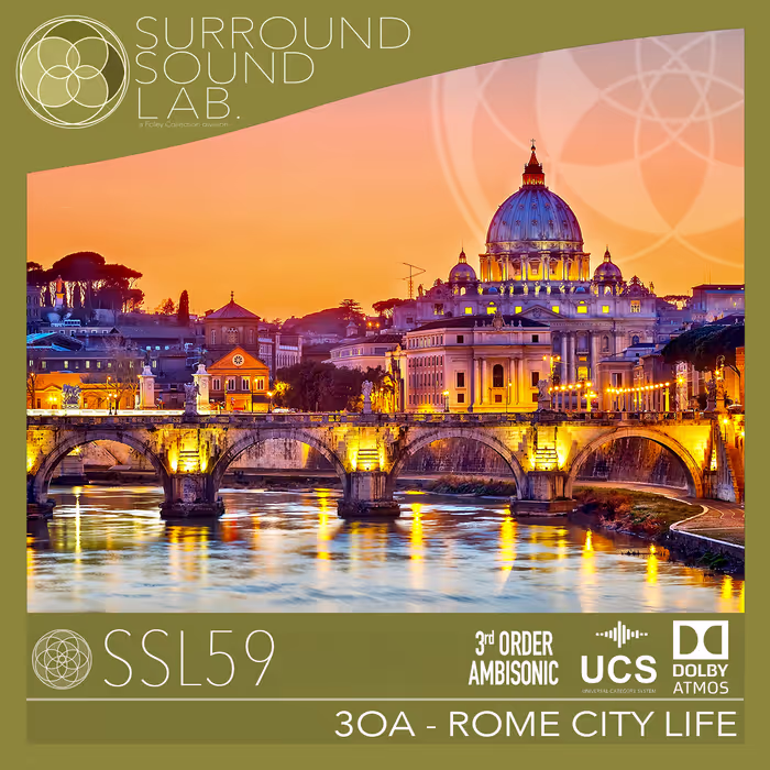 'SSL59 Rome City Life (3rd Order AmbiX)' by Foley Collection & Surround Sound LAB is a premium sound library 3rd-order Ambisonics recordings that capture the vibrant essence of Rome's urban life. It includes 9.1.6 Dolby Atmos audio files and versatile mixing options.