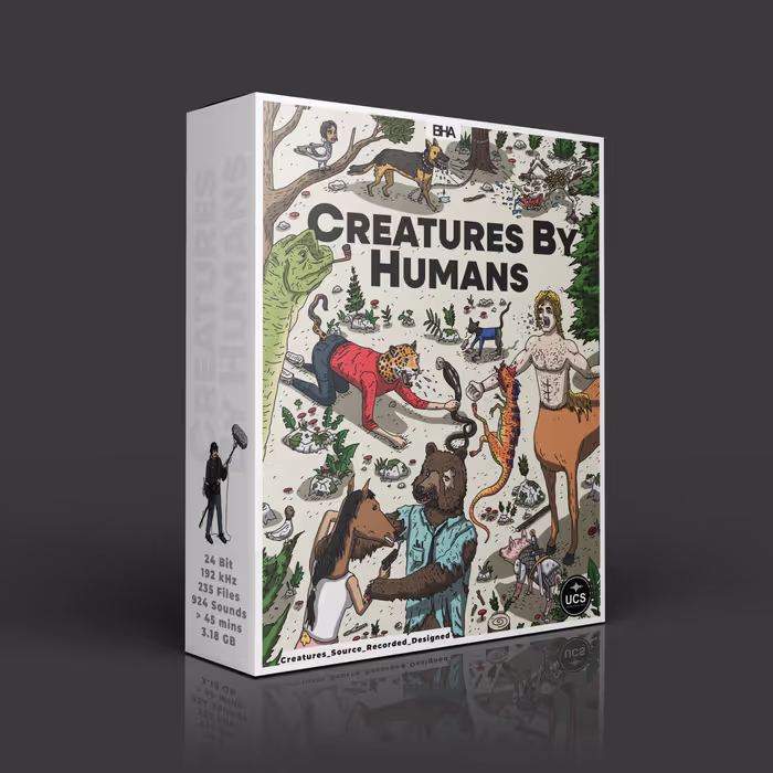 Ben Harding Audio LTD features male and female vocalizations imitating an array of animals, recorded at 192kHz using a Sanken CO-100k. It also contains otherworldly vocalizations such as zombies, feral bears, massive beasts, etc.