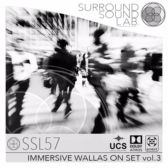 'SSL57 Immersive Wallas on Set vol.3' by Foley Collection & Surround Sound LAB provides authentic cinematic ambiances recorded on real movie sets and locations. It offers immersive crowd and environmental sounds, decoded to 7.1.2 Dolby Atmos, 5.1, and stereo, with extensive metadata in English and Spanish.