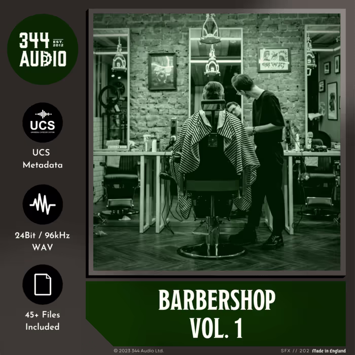 'Barbershop Vol. 1' by 344 Audio showcases sounds created by furniture inside a barbershop, like creaks and moans from the staircase into the shop, the running taps from the hair-washing station, and movements from a barberโs chair, hair dryers, spray bottles, pomade tins, and more!