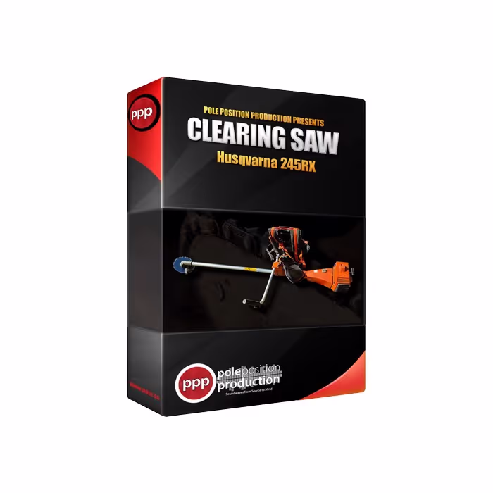 'Clearing Saw' by Pole Position Production features field recordings of working, idling, ramps, steady RPMs, and performed effects. This collection features a Husqvarna 245RX clearing saw with a 2-stroke engine 45 cm3 with performances of idles, revs, blips, ramps, steady RPMs, and more.
