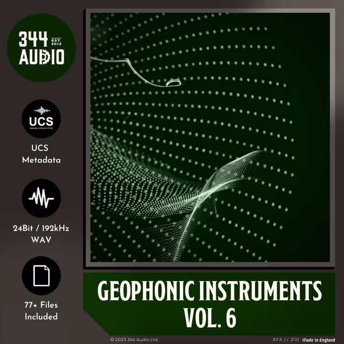 'Geophonic Instruments Vol. 6' by 344 Audio features recordings from a Lom Geofon, capturing subsonic frequencies of a kalimba and harmonica. The result is a collection of super weighty drones, rumbles, tones and impacts great for sci-fi, mystery, thriller and horror genres.
