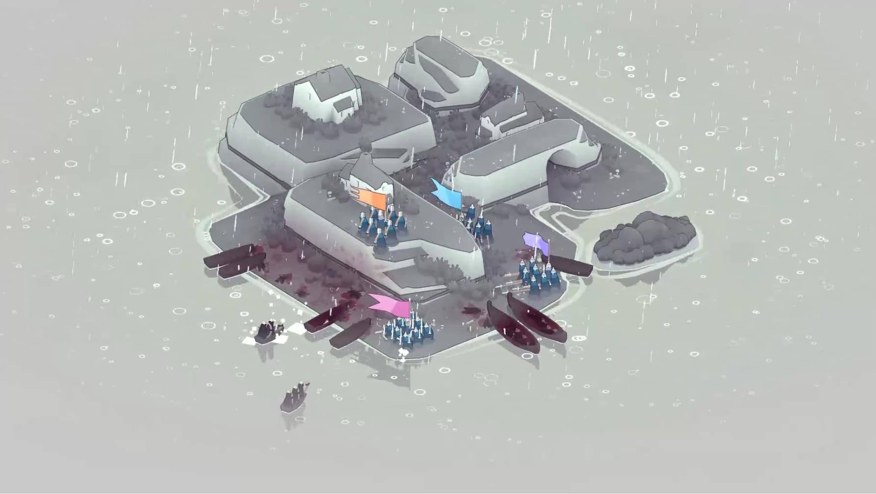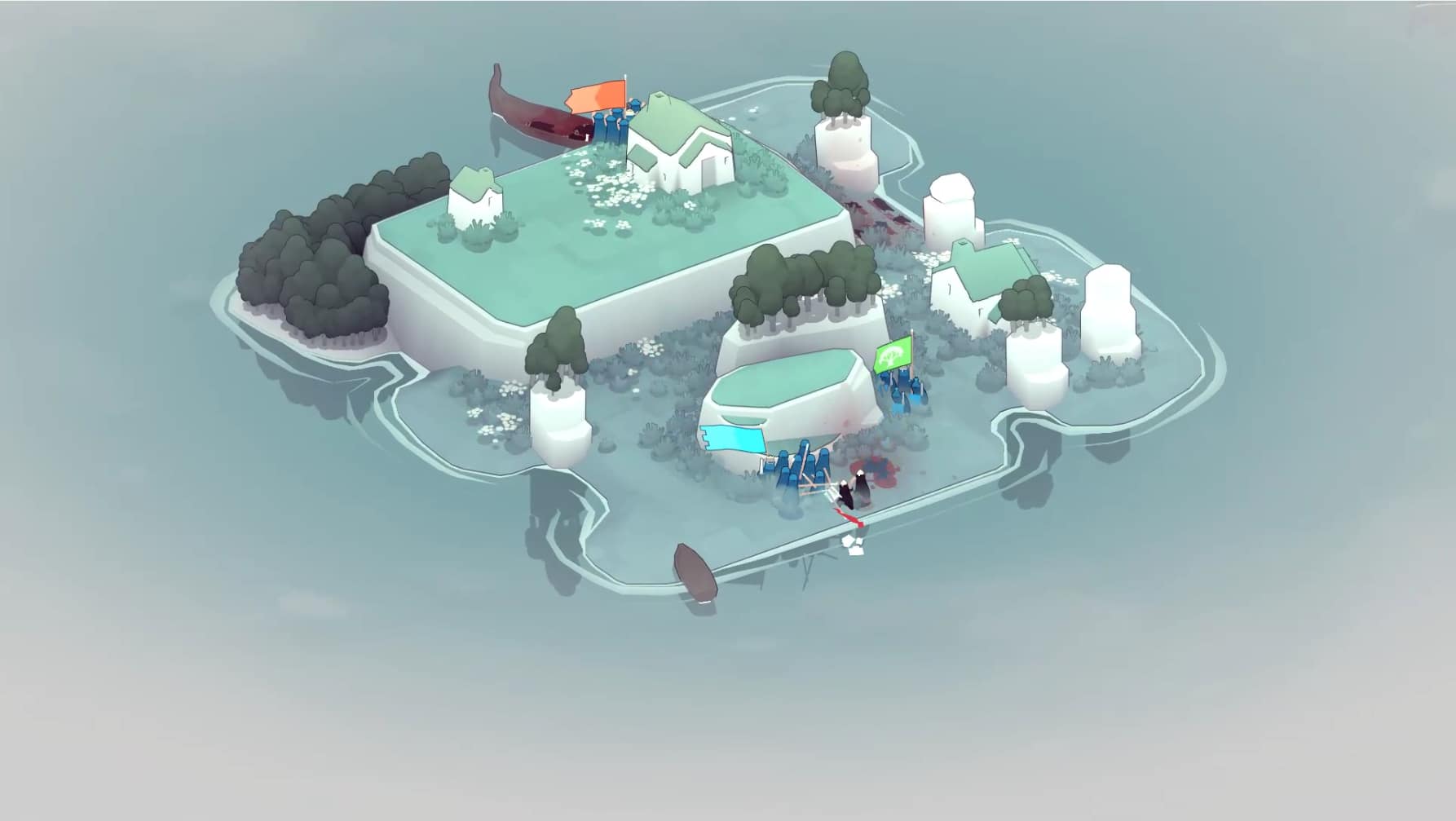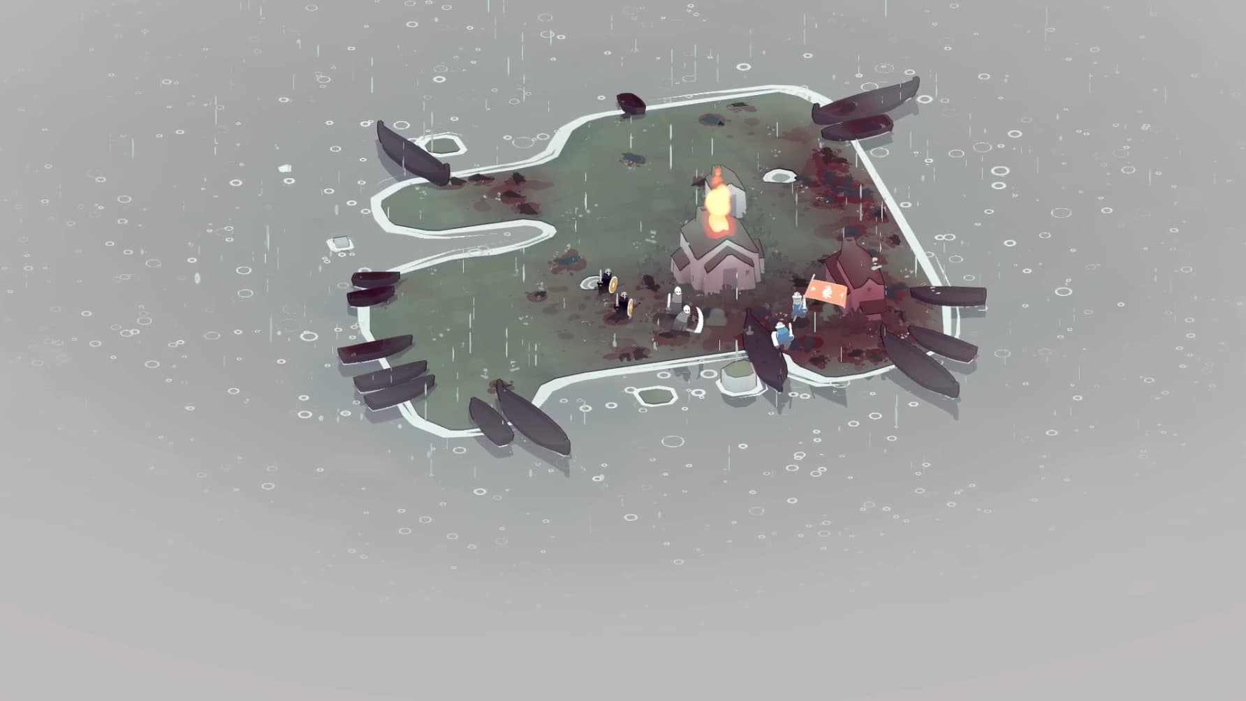 MK: I was very inspired actually by The Settlers game series, like Settlers 1, 2 and 3 specifically, which I played a lot of a kid, and I just kind of liked that they felt so cute but they would still fight each other, and with Bad North I wanted it to be very cutesy and pleasant, but we definitely also wanted to show that this is a diorama of battle, but it’s a diorama of a real battle, so these creatures are dying, these people are dying and you see that as well with – you can turn it off if you want – but you can see a lot of blood. So once an island is done, you see the smoking chars of houses and the whole island is pink with blood from fallen foes and friends basically.