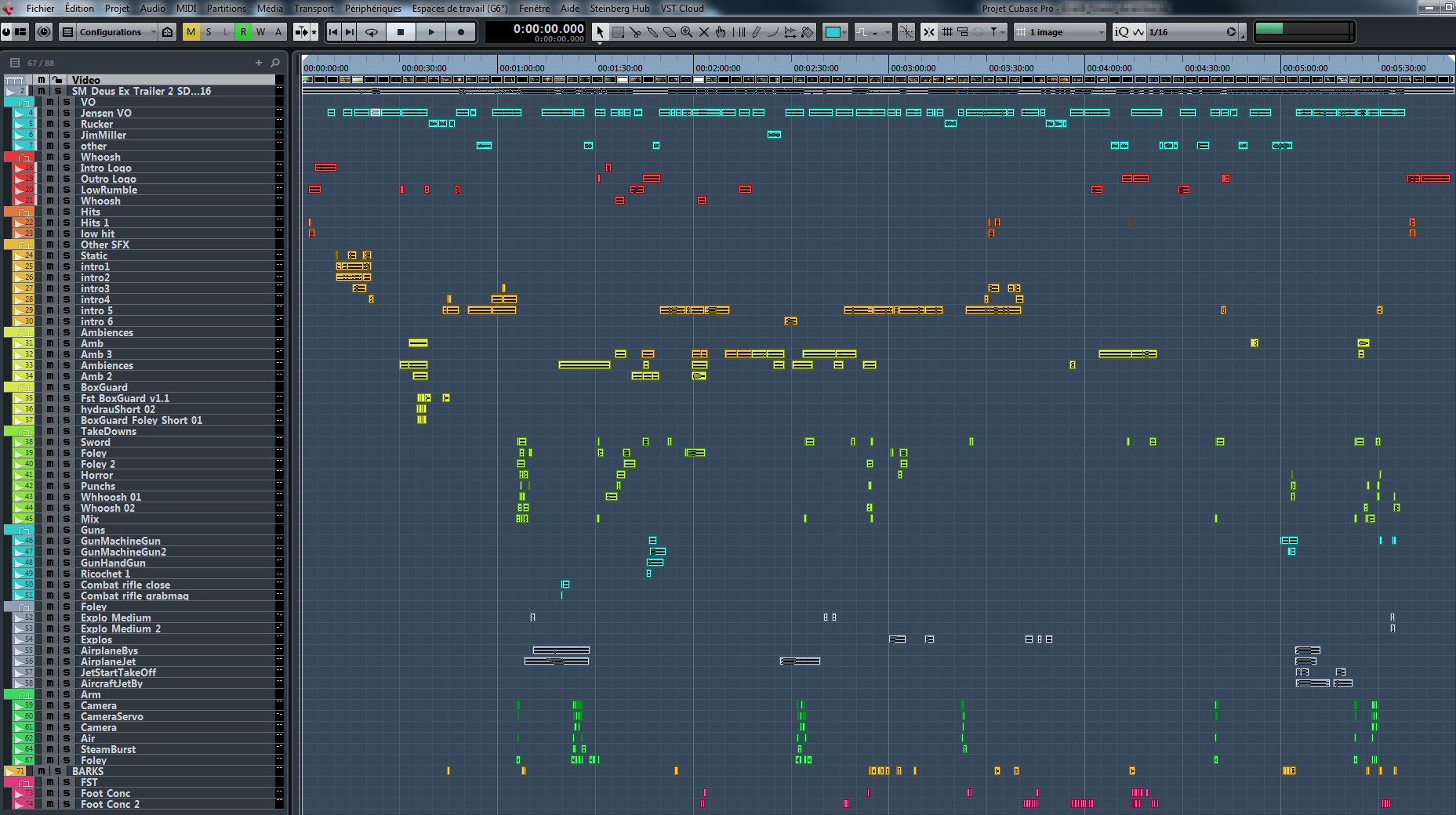 I mainly work with 3 master subgroups: voice, music and sound effects. I always start with the voice, to have it as clear as possible, and then blend the music in. When I have a relatively good mix of these two elements, I start doing the sound design process.