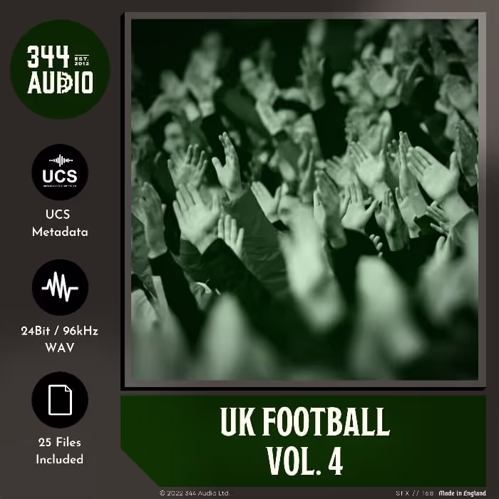 'UK Football Vol. 4' by 344 Audio has candid recordings of UK football fans, crowd reactions, and walla during gameplay. From the perspective of a large crowd in the stands, you will hear groans, โweeeyโs, โawwwโs, boos, clapping, and much more!