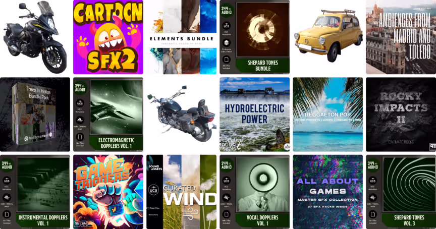 If you're working on games or music, we have a massive 12,000+ game SFX library, a collection of in-game interactions and actions, synthy cartoon sounds, and smooth Reggaeton Serum presets.