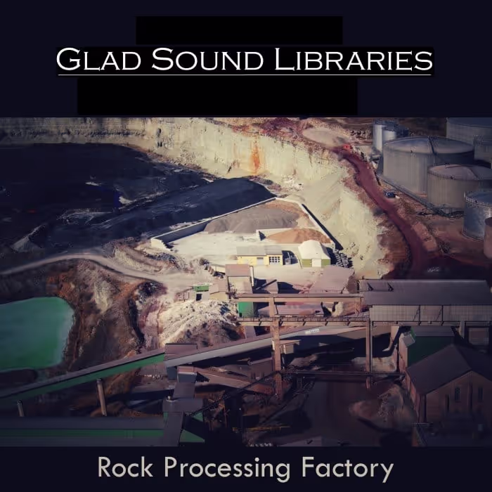 ย 'Rock Processing Factory' by Glad Sound Libraries was recorded at Cementa, a rock processing and cement factory in Skรถvde, Sweden. This library features rocks being processed and crushed by machines that rattle, hum, squeal and spin as they crush massive amounts of earth. These recordings are perfect for creepy industrial ambiences, torture devices, or even massive storms ready to tear the roof off. If you are looking for something completely new in your ambiences, give this library a listen.
