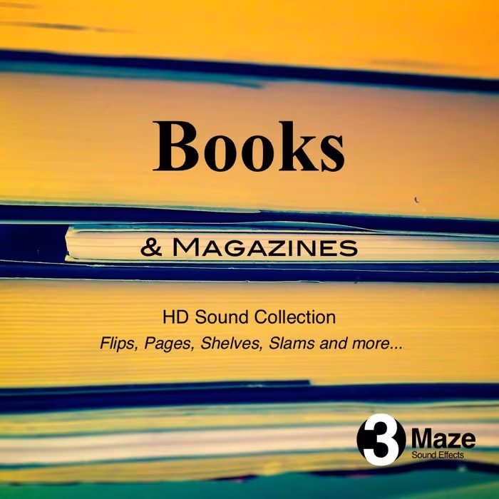 ย 'Books & Magazines' by 3MAZE has 87 sounds of books being handled in various ways. You will hear sounds of these publications being flipped over on a table, slammed shut, and moved around on shelves. And of course, there are plenty of sounds of page turns. Each sound was also recorded at 96kHz and is in its own file for quick implementation. If you need sounds of paperbacks and hardcovers in action, check this one out.