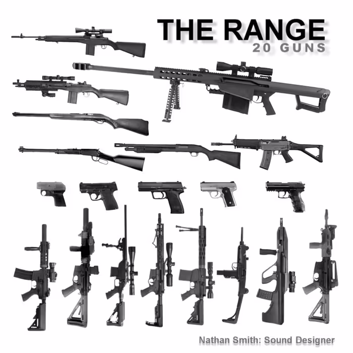 Nathan Smith delivers the sounds of 20 guns, over 20 casings and mags, weapon impacts on 20 different surfaces, and studio Foley.