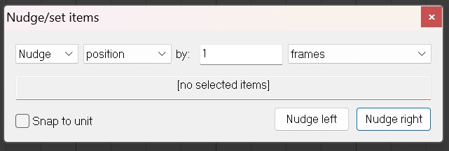 First, press the N key or go to Edit > Nudge/Set Items to open the nudge settings window.