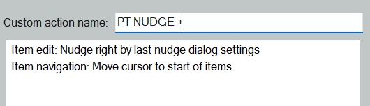 In the Action List, click New Action and create two new ones according to the settings below. The way to find the two actions necessary for Nudge + and Nudge – are shown below and can be found if the action list shown on the left of the Custom Action window.