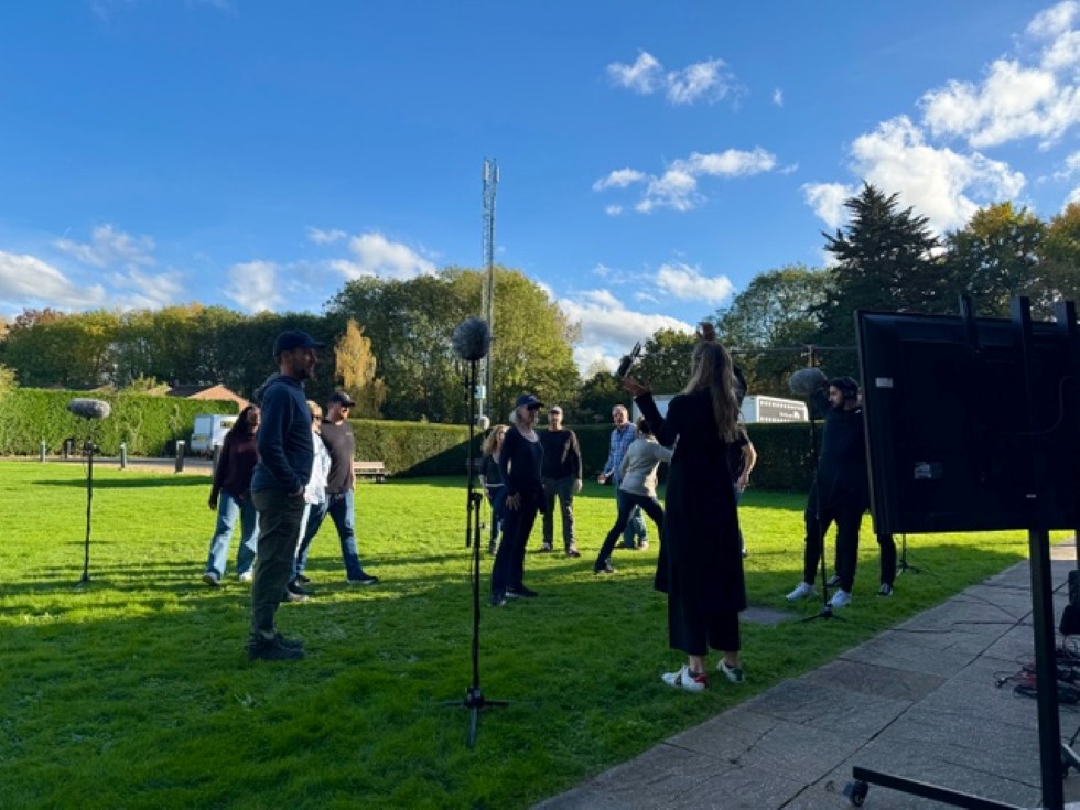 As well as the children’s sessions over at Formosa, the adults were recorded over two days, but in two parts: a studio-based session for interior spot lines and anything that required picture reference, and an exterior session. This was done on grass, near a couple of small buildings. The grass meant there’d be little foot noise, and the buildings gave a beautiful natural slap to the more projected lines. We captured this session on a 5.0 array, always matching our microphones to Lisa’s on set.
